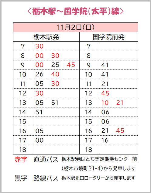 バス時刻表〈栃木駅~国学院(太平)線〉