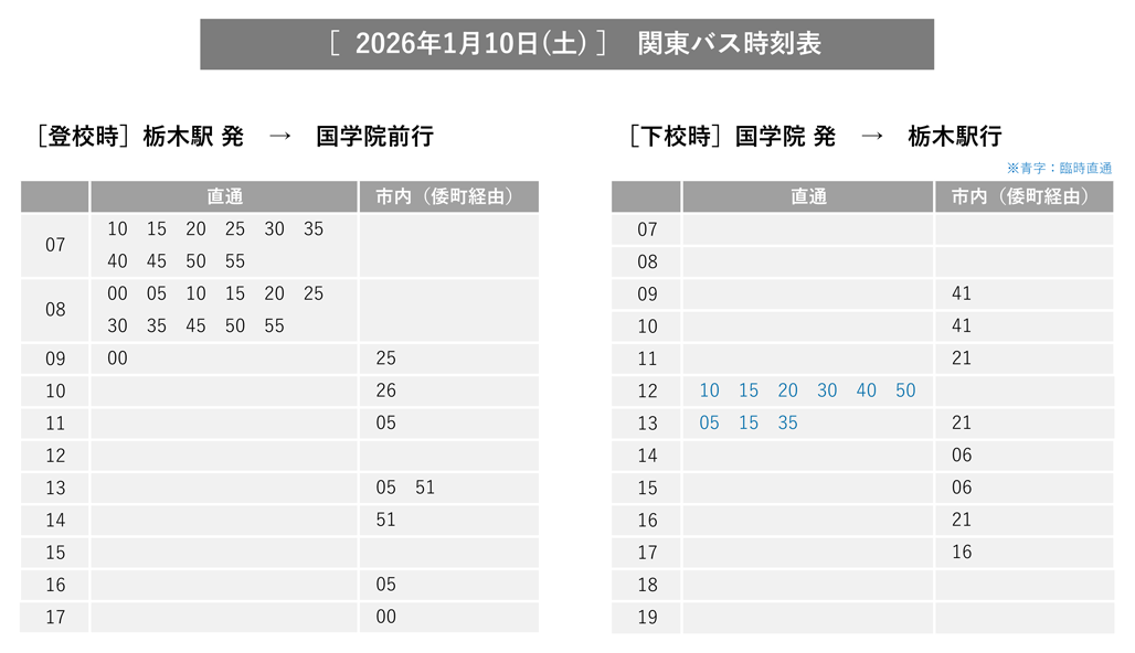 1/10(土)のバスダイヤのお知らせ
